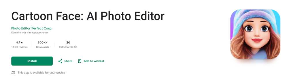 Want to turn your face into a cute cartoon? Cartoon Face has got your back. It’s easy to use and lets you create adorable cartoon versions of yourself. With over 5 million downloads, it’s clear this app is a winner!