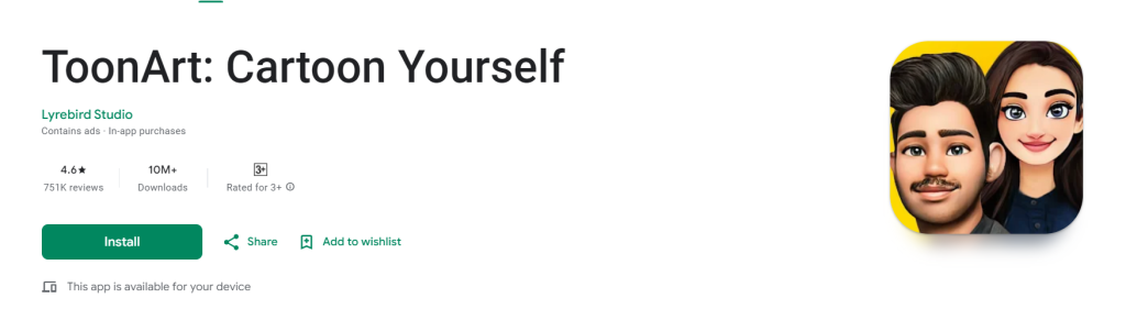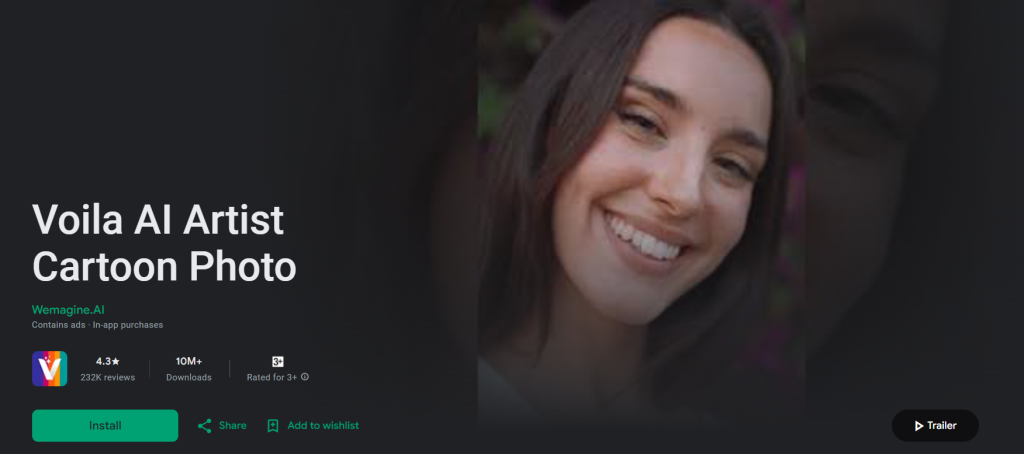 Now, this one is fancy! Voila not only turns your photos into cartoons but also makes caricatures and even paintings like the ones from way back in the day. It’s got this smart tech that gives you amazing results. With over 5 million downloads, it’s definitely a hit!